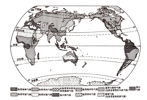 ③赤道終年炎熱,南極大陸終年冰雪覆蓋--緯度因素;