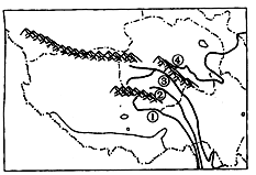 (3)我國“三江源自然保護區(qū)”成立,“三江”是圖中②瀾滄江、③長江、④黃河,因為海拔高,多雪山冰川,眾多河流發(fā)源。