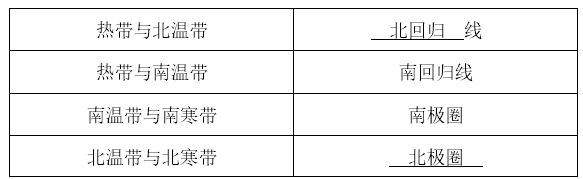 1.五帶名稱: 熱 帶、 北溫 帶、 南溫 帶、北寒帶和南寒帶。