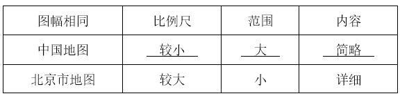 3.比例尺大小與其所表示范圍大小及內(nèi)容詳略的關(guān)系