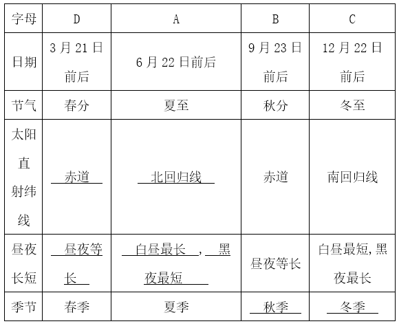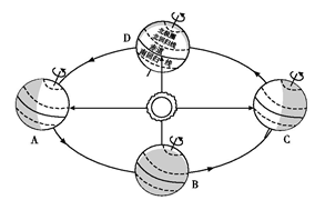 3.圖表示意地球公轉(zhuǎn)(北半球)