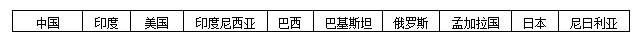 b) 人中超過1億的國家。(大部分在亞洲)