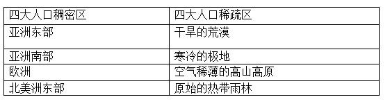 2、人口的分布狀況與自然環(huán)境密切相關(guān)。世界上絕大多數(shù)人口居住在中低緯度臨海平原地區(qū)是人口稠密區(qū)。