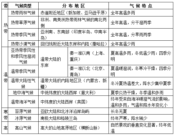 ㈡根據(jù)氣溫數(shù)值判定氣候帶: