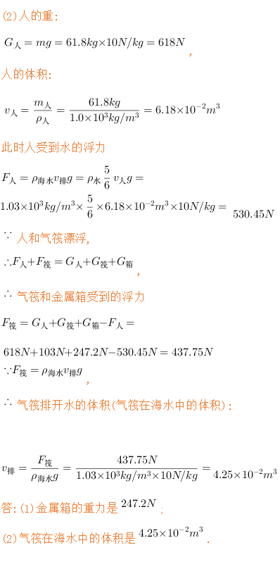 ④原理法:F浮=G排 或F浮=ρ液V排g (阿基米德原理求浮力,知道物體排開(kāi)液體的質(zhì)量或體積時(shí)常用)。