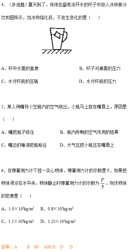 在初中物理考試中經(jīng)常出現(xiàn)的是浮力與壓強(qiáng)綜合考察。所以今天大師就為大家整理了這樣的題哦~快一起看一下吧!