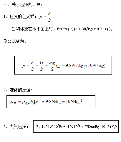 二、關(guān)于固體壓強(qiáng)、壓力和液體壓強(qiáng)、壓力的計(jì)算: