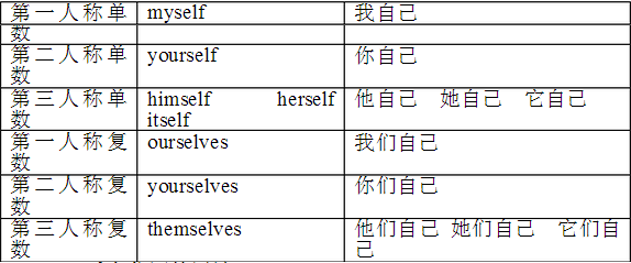反身代詞可用做賓語(yǔ)、表語(yǔ)、主語(yǔ)和賓語(yǔ)的同位語(yǔ)。用作同位語(yǔ)時(shí)表示強(qiáng)調(diào)“本人;自己”。