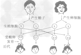 女性的性染色體組成為XX,男性的性染色體組成為XY。在形成生殖細胞時,卵細胞只含有X,精子有兩種,或含有X或含有Y,哪種精子與卵細胞結(jié)合是隨機的。因此,生男生女的可能性各占一半,生男生女也是隨機的。