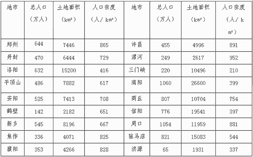 河南主要城市人口對(duì)比表: