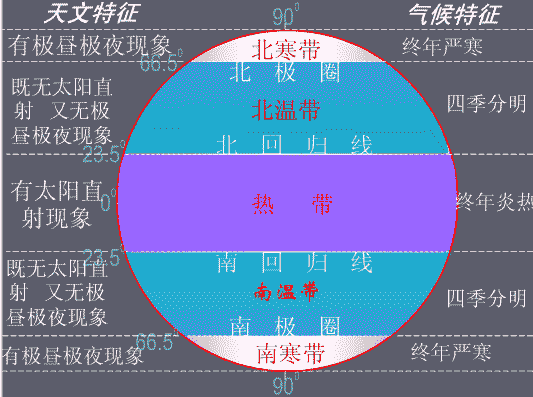 五帶劃分的示意圖: