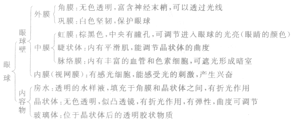 眼的主要部分是眼球,由眼球壁和眼球的內(nèi)容物構(gòu)成。眼球的結(jié)構(gòu)如圖