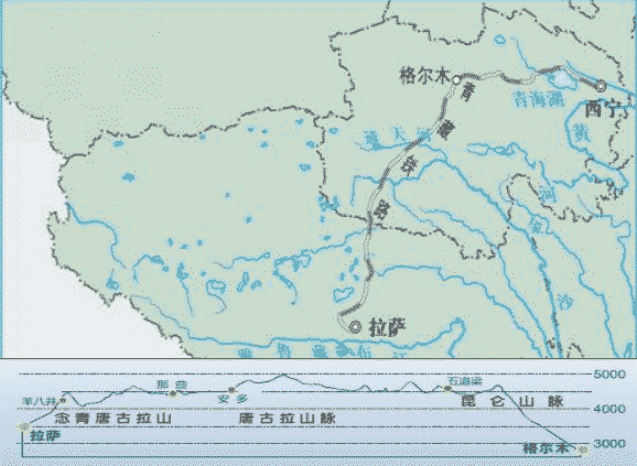 青藏鐵路線路示意圖: