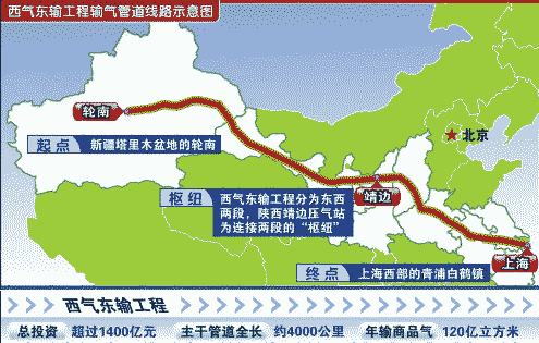 西氣東輸示意圖: