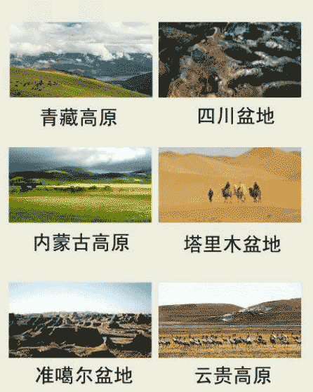 西部地區(qū)主要自然景觀: