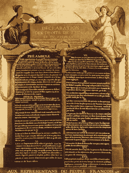 1789年8月26日頒布的《人權宣言》,是在法國大革命時期頒布的綱領性文件。《人權宣言》宣布自由、財產、安全和反抗壓迫是天賦不可剝奪的人權,肯定了言論、信仰、著作和出版自由,闡明了司法、行政、立法三權分立、法律面前人人平等、私有財產神圣不可侵犯等原則。是法國大革命頒布的綱領性文件。