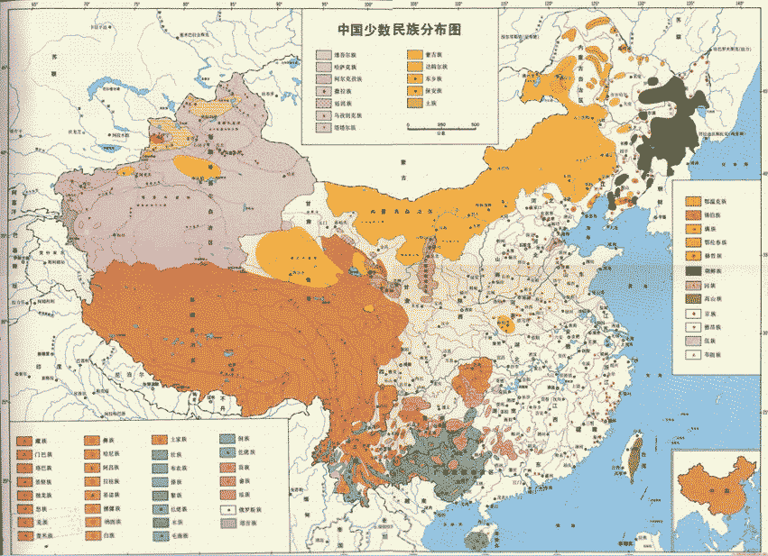 大雜居、小聚居、相互交錯居住。漢族地區(qū)有少數民族聚居,少數民族地區(qū)有漢族居住。這種分布格局是長期歷史發(fā)展過程中各民族間相互交往、流動而形成的。中國少數民族人口雖少,但分布很廣。全國各省、自治區(qū)、直轄市都有少數民族居住,絕大部分縣級單位都有兩個以上的民族居住。中國的少數民族主要分布在內蒙古、新疆、寧夏、廣西、西藏、云南、貴州、青海、四川、甘肅、黑龍江、遼寧、吉林、湖南、湖北、海南、臺灣、重慶市等省、自治區(qū)。中國民族成分最多的是云南省,有25個民族。