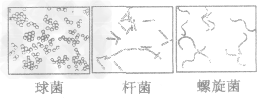 細菌都是形體十分微小的單細胞個體,只有在高倍顯微鏡或電鏡下才能觀察到細菌的形態(tài)。細菌的形態(tài)因種類不同而不同,其基本形態(tài)有球狀、桿狀、螺旋狀,分別稱為球菌、桿菌、螺旋菌,如圖所示。雖然有些細菌相互連接成球團或長鏈,但每個細菌都是獨立生活的。