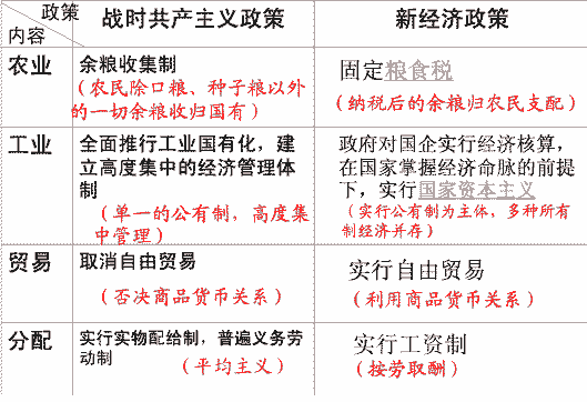 戰(zhàn)時(shí)共產(chǎn)主義政策與新經(jīng)濟(jì)政策的對(duì)比: