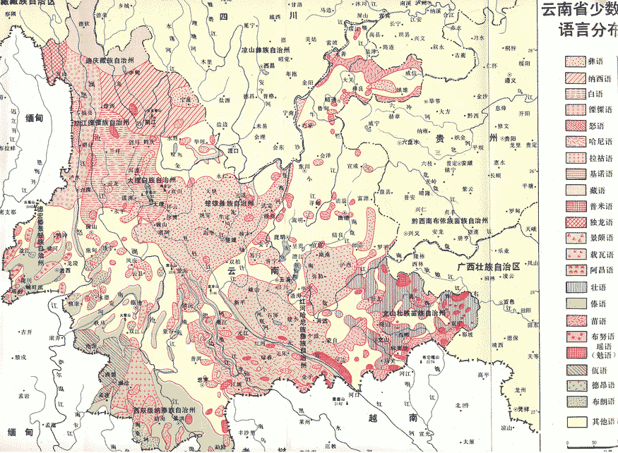 云南省少數(shù)民族分布(語言):