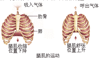歸納總結(jié):膈肌收縮,膈頂部下降,使胸廓的上下徑增大;膈肌舒張,膈頂部回升,使胸廓的上下徑縮小。