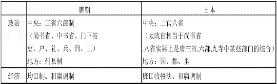 大化改新和唐朝制度比較:
