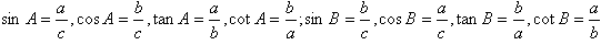 sinA=a/c,cosA=b/c,tanA=a/b,cotA=b/a