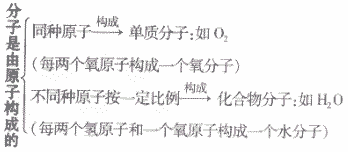 | 如:在電解水實驗中,水分子可以分成氫原子和氧原子,而氫原子和氧原子不可以再分,只是重新組合成氫分子、氧分子 | ||