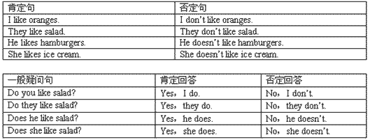 在主語后謂語動詞前加助動詞don’t(I,you,以及復數(shù)), doesn’t(單數(shù)she,he,it)變成否定句,助動詞后的動詞要變成動詞原形。
