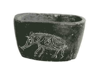 半坡聚落位于陜西西安半坡村,距今約6000年,屬新石器石器晚期,是黃河流域氏族部落的代表。半坡居民飼養(yǎng)豬、狗等家畜,還打獵、捕魚,已經(jīng)學(xué)會紡線,織布和制衣并且普遍使用磨制石器。陶器是那時人們?nèi)粘I畹闹饕镁摺0肫逻z址出土了大量陶器,陶器的底色一般為紅色,上面多繪有人、動物和幾何花紋等圖案,稱為彩陶。