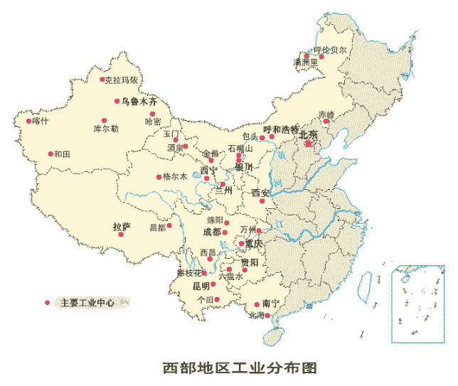 西部地區(qū)工業(yè)分布圖: