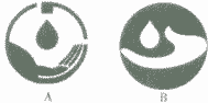 B圖為新千年“國家節(jié)水標志”。“標志”由水滴、人手和地球組成。