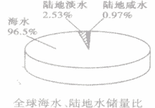 ①水在地球上分布很廣,地球上的海洋水、湖泊水、河流水、地下水、大氣水和生物水等各種形態(tài)的水總儲量約為1.39×1018m3。地球表面的70.8%被水覆蓋。其中海洋水約占全球總儲水址的96.5%。