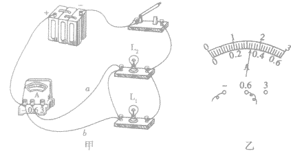 解析從圖示可以看出導(dǎo)線6是多余的,去掉b 后,兩燈泡并聯(lián),電流表測(cè)干路的電流,從電流表的量程和指針偏轉(zhuǎn)可以看出,此時(shí)的示數(shù)為0.34A。