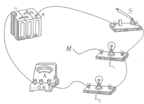 如圖,要保證L1和L2并聯(lián),只要線頭M接在從燈 L2的左接線柱到電流負(fù)極的任一接線柱上都可以。但當(dāng)M接在燈泡L1的左接線柱上或電流表的右接線柱上時(shí),電流表被留在干路中;當(dāng)M接在電源負(fù)極或電流表的左接線柱上時(shí),電流表被留在了L2的支路上。所以兩種接法電流表所處的位置不同,所測(cè)的電流也不同。