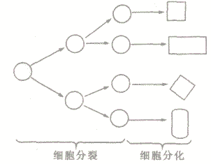 受精卵通過細(xì)胞的分裂產(chǎn)生新細(xì)胞,隨著新細(xì)胞的不斷生長,一小部分細(xì)胞仍然保持著很強(qiáng)的分裂能力,構(gòu)成了具有分裂能力的細(xì)胞群;另外的一部分細(xì)胞停止了分裂活動(dòng),根據(jù)它們將來所要擔(dān)負(fù)的生理功能,這些細(xì)胞在形態(tài)、結(jié)構(gòu)上逐漸發(fā)生了變化,從而逐漸形成了許多形態(tài)、結(jié)構(gòu),功能不同的細(xì)胞群。這就是細(xì)胞分化,細(xì)胞分化的結(jié)果是形成了組織,如圖: