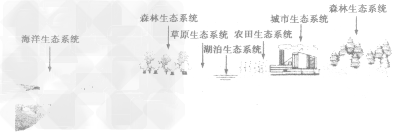 地球上存在著多種多樣的生態(tài)系統(tǒng),生物圈是地球上最大的生態(tài)系統(tǒng)。如圖1?22?3所示,在生物圈中又可以分出很多小的生態(tài)系統(tǒng),如一片森林、一塊草地、一塊農(nóng)田、一個(gè)池塘、一條河流等,即生態(tài)系統(tǒng)的多樣性。