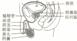 包括內(nèi)生殖器和外生殖器二個(gè)部分。內(nèi)生殖器由生殖腺(睪丸)、輸精管道(附睪、輸精管、射精管和尿道)和附屬腺(精囊腺、前列腺、尿道球腺)組成。外生殖器包括陰囊和陰莖。其中睪丸產(chǎn)生精子。