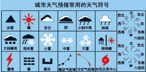 城市天氣預(yù)報常用符號: