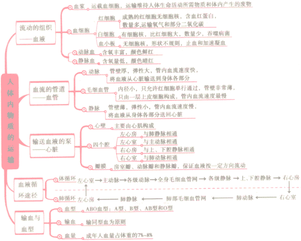 人體內(nèi)物質(zhì)的運(yùn)輸知識梳理: