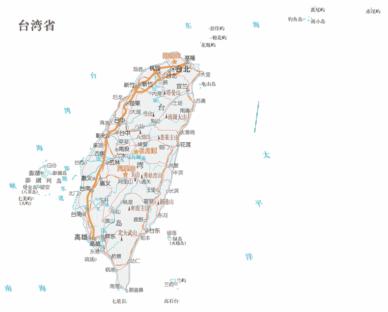 本省包括臺灣島,以及附近的澎湖列島、釣魚島等許多小島,面積共3.6萬平方千米。臺灣島是全國面積最大的島嶼,臺灣島約有2/3面積為山地。山地主要分布在臺灣島中部和東部。幾條平行山脈作東北--西南走向,縱貫全島。西部平原寬廣。島上多火山、地震。島上河流短急,水能蘊藏量大。最長河流濁水溪僅186千米。最大湖泊日月潭。