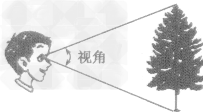 觀察物體時(shí),從物體兩端(上、下或左、右)引出的光線在人眼光心處所成的夾角(如圖所示)。