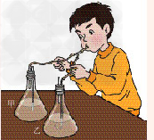 甲乙兩個(gè)瓶子中都裝有澄清的石灰水,在吸入氣體時(shí),左手捏緊橡皮管,右手松開(kāi),在呼出氣體時(shí),右手捏緊橡皮管,左手松開(kāi)。