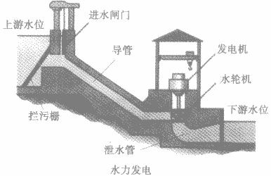 數(shù)千年前,人們已知道利用流水的能量來(lái)轉(zhuǎn)動(dòng)水車,汲水灌溉。自從19世紀(jì)末德國(guó)建成世界上第一座水電站以來(lái),水力發(fā)電就成了水能利用的主要形式。當(dāng)上游的水沖擊水輪機(jī)的葉片時(shí),就把大部分動(dòng)能傳遞給水輪機(jī),使水輪機(jī)轉(zhuǎn)動(dòng)起來(lái),由此帶動(dòng)發(fā)電機(jī)發(fā)電。