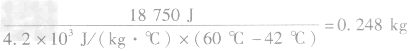 熱水由60℃降低到42℃放出的熱量 Q放=c2m2(t0’一t),Q吸=Q放,