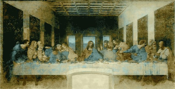 《最后的晚餐》是意大利藝術(shù)家列奧納多·達(dá)·芬奇所創(chuàng)作,是所有以這個(gè)題材創(chuàng)作的作品中最著名的一幅。畫面中的人物,其驚恐、憤怒、懷疑、剖白等神態(tài),以及手勢、眼神和行為,都刻劃得精細(xì)入微,惟妙惟肖,現(xiàn)藏米蘭圣瑪利亞德爾格契修道院。