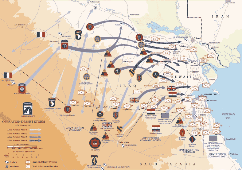 海灣戰(zhàn)爭是指1990年8月2日至1991年2月28日期間,以美國為首的由34個國家組成的多國部隊和伊拉克之間發(fā)生的一場局部戰(zhàn)爭。1990年8月2日,伊拉克軍隊入侵科威特,推翻科威特政府并宣布吞并科威特。以美國為首的多國部隊在取得聯(lián)合國授權(quán)后,于1991年1月16日開始對科威特和伊拉克境內(nèi)的伊拉克軍隊發(fā)動軍事進攻,主要戰(zhàn)斗包括歷時42天的空襲、在伊拉克、科威特和沙特阿拉伯邊境地帶展開的歷時100小時的陸戰(zhàn)。多國部隊以較小的代價取得決定性勝利,重創(chuàng)伊拉克軍隊。伊拉克最終接受聯(lián)合國660號決議,并且從科威特撤軍。