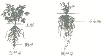一根植物所有根的總和,稱為根系。根系可分為直根系(雙子葉植物)和須根系(單子葉植物)。