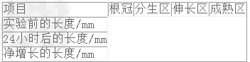 4、將幼苗放在溫暖的、黑暗的地方培養(yǎng)24小時后,觀察幼根各部分的生長的情況,再測量各部分的長度,填入表格。