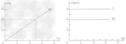 4m/s,所以運動速度相同的小車是甲和丙。當甲、乙、丙同時、同地、同向運動時,經過5s后,